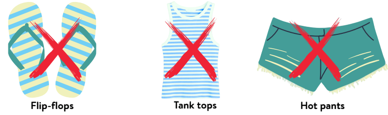 To Maintain Harmony & Experience: We respectfully ask guests to please refrain from wearing: